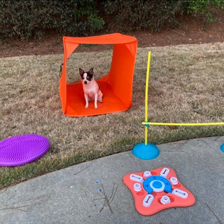 Agility – Agility is a fantastic way to exercise both your dog’s mind and body. While group classes and trials might be overwhelming, private lessons offer a low-stress way to enjoy the sport. For added structure, AKC and The Valor Project both offer virtual agility titles, allowing you to play with a purpose at your own pace.